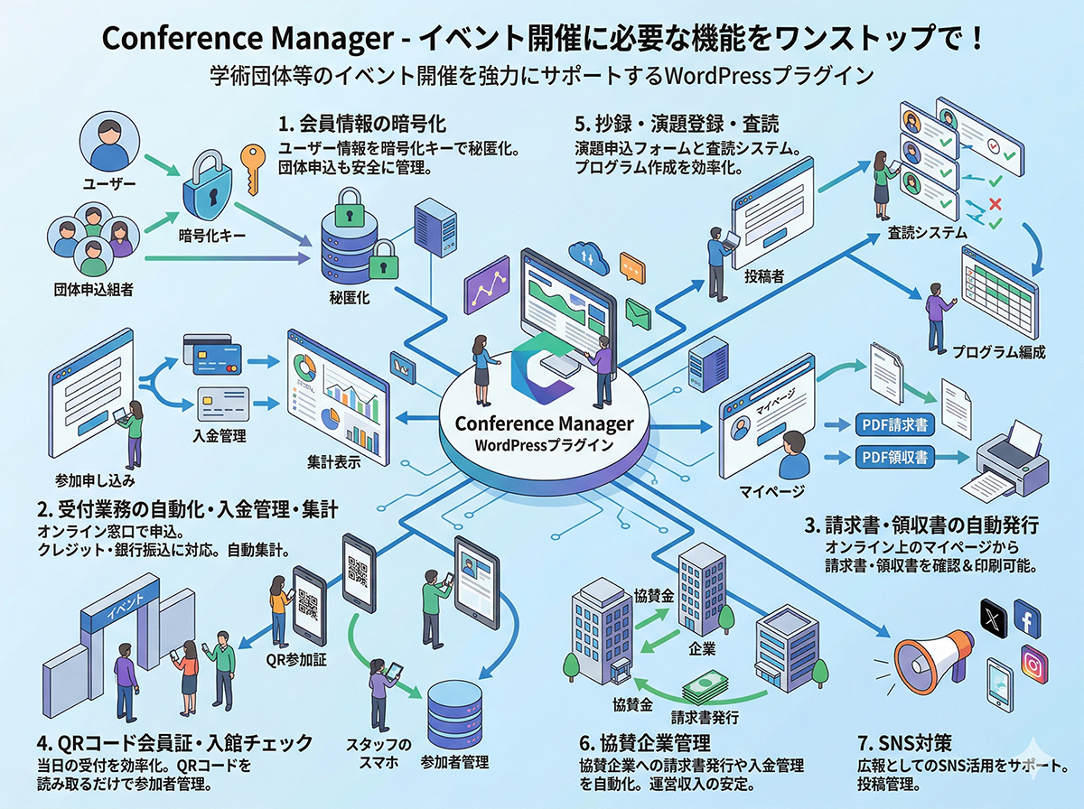 ユーザー情報を暗号化キーの活用で秘匿化することで、団体申込を含めて、会員情報を安全に運用できます。